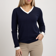 TKEQ The 'ESSENTIAL' Contrast V-NECK Navy/White