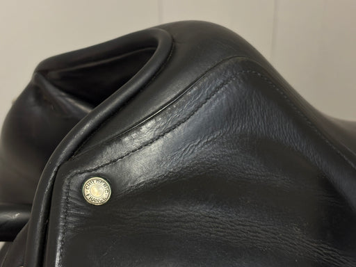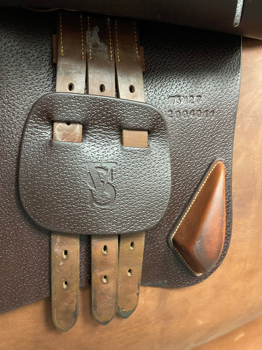 Since we do allow saddle trials it is possible our new and demo saddles can have some slight marking from trials. Slight wear marks/rubs can show where the girth does up on the billets, where the billet gaurd and girth buckles/ girth can rub in between flaps and where the riding boot/ stirrup leather sits and rubs on the outside flap. Stitching color can also be darkened by the stirrup leather/ riding boots on the outsode of the flaps. This is all very minor wear and does not make the saddles used, we mark used saddles as either consignment or used in listings. As fit is important with saddles for the horses health and well being we wil always allow trials to our clients. Hence all of our saddles new and demos can possibly have slight marks, darkening of stiching from these trials but are considered new.