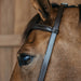 The Training Bridle is a very minimalistic bridle that has plenty of adjustment points. There is only one buckle adjustment over the horse’s head. There is no throat latch on this bridle. The bridle has a removable flash ½’’ noseband. The cheekpieces of the bridle have clips to easily attach your bit.